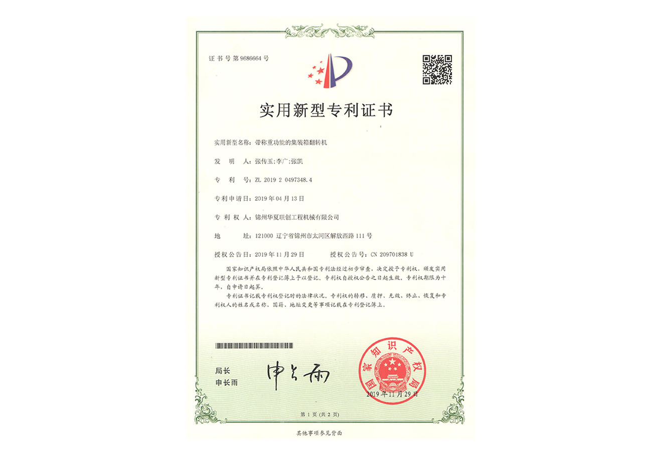 2008年初,開始自主研發設計生產制造,不斷檢驗測試,下半年打入國內市場,正式銷售集裝箱翻轉機。